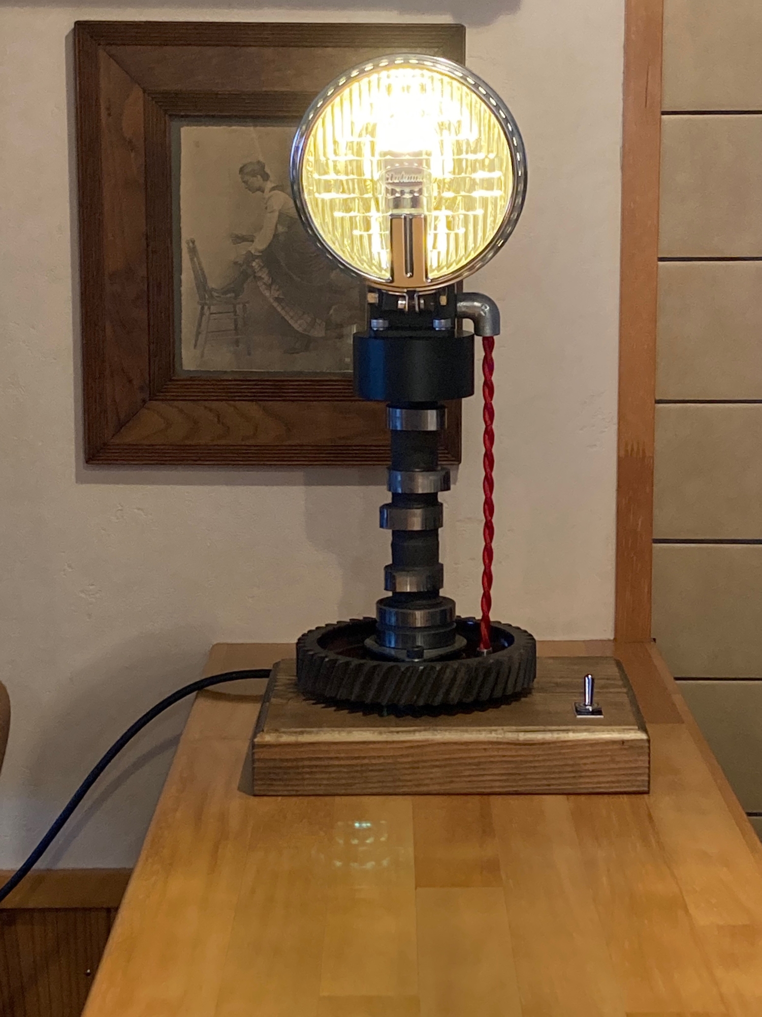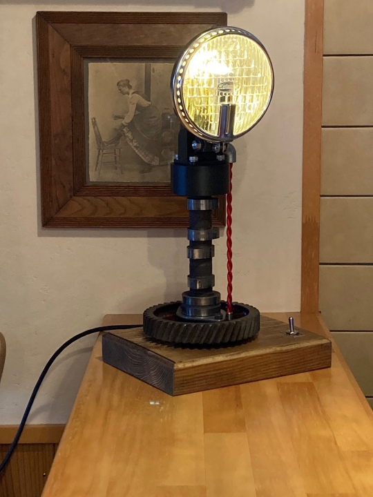 以前乗っていたトヨタスポーツ800のエンジンをオーバーホールした時に交換した部品を持っていました、その部品を使ってランプを作りました。